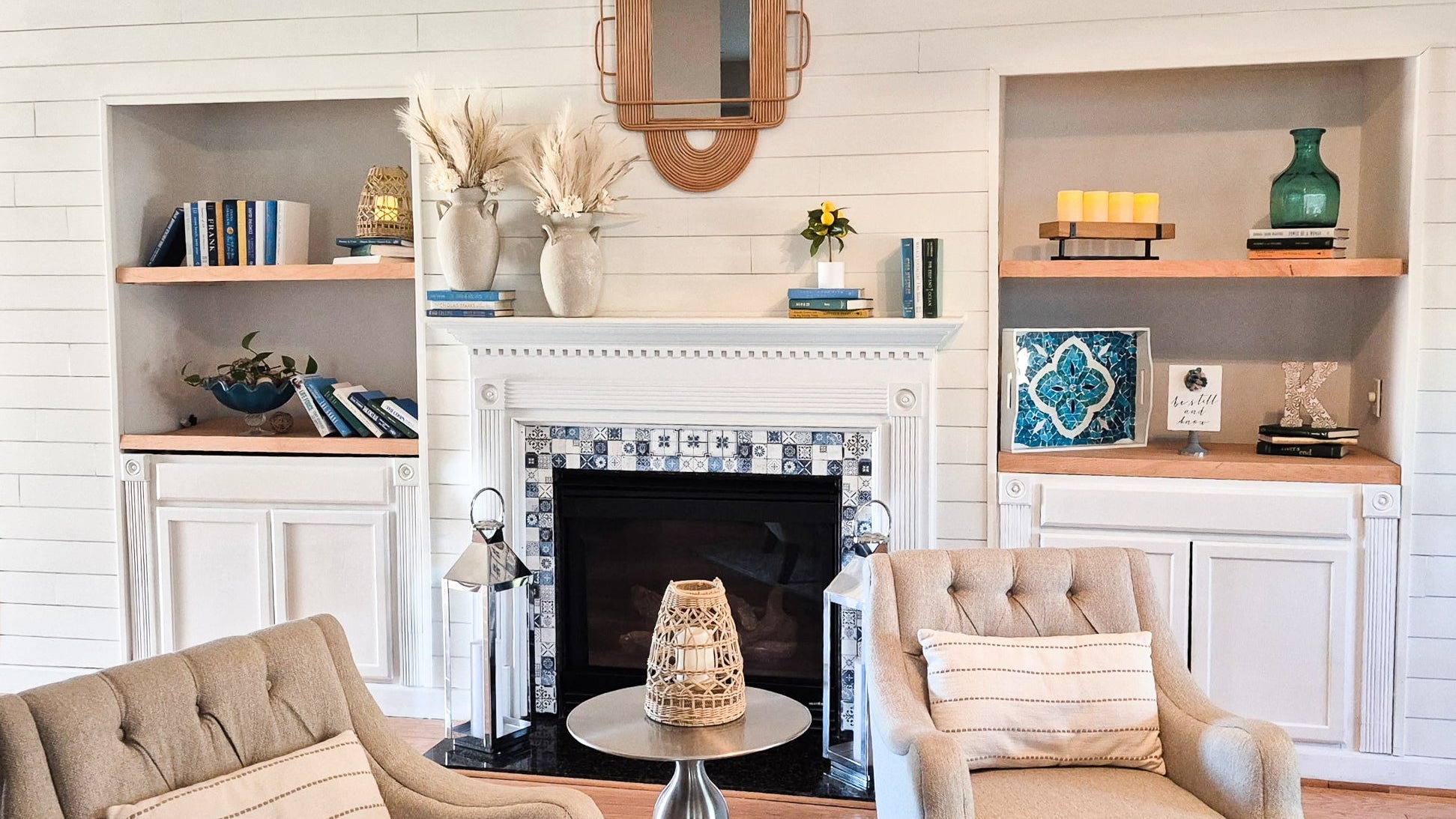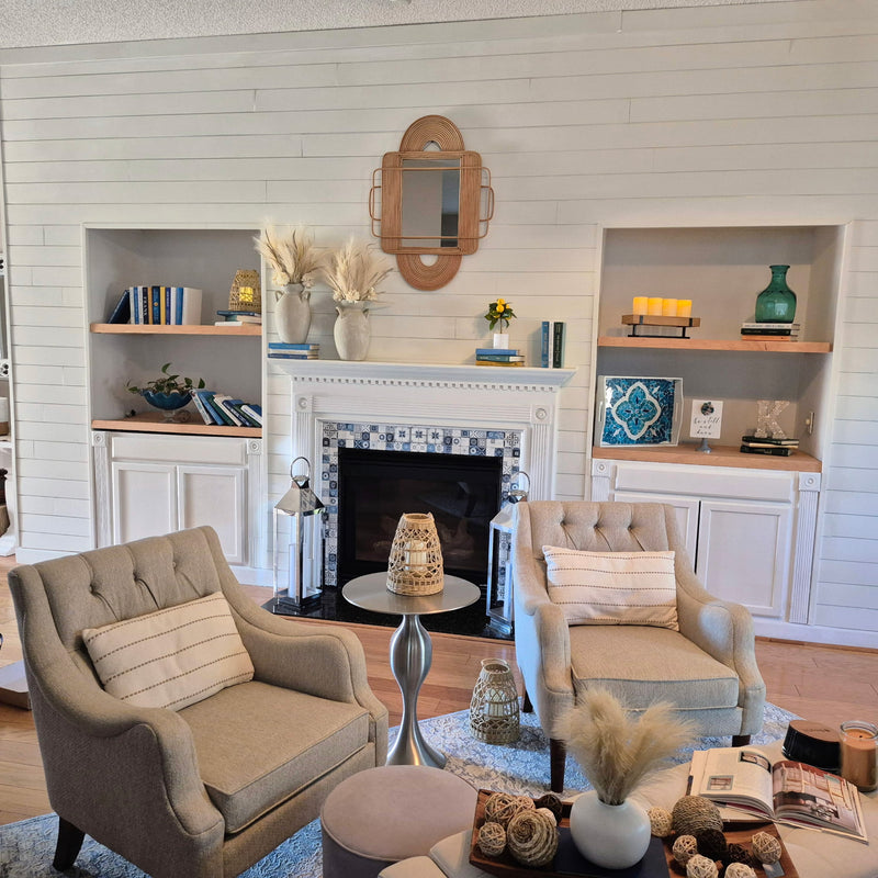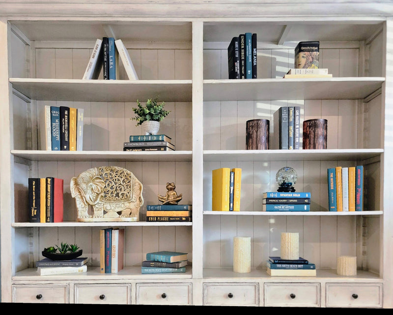 The perfect decor with unique books and accent pieces.